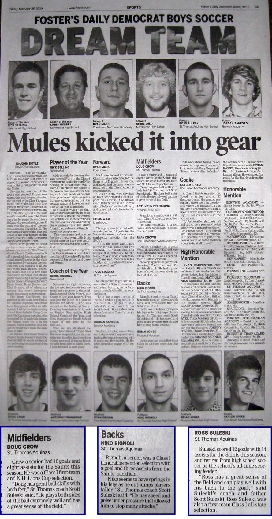newspapers, past players and coaches. The St. Thomas boys soccer program